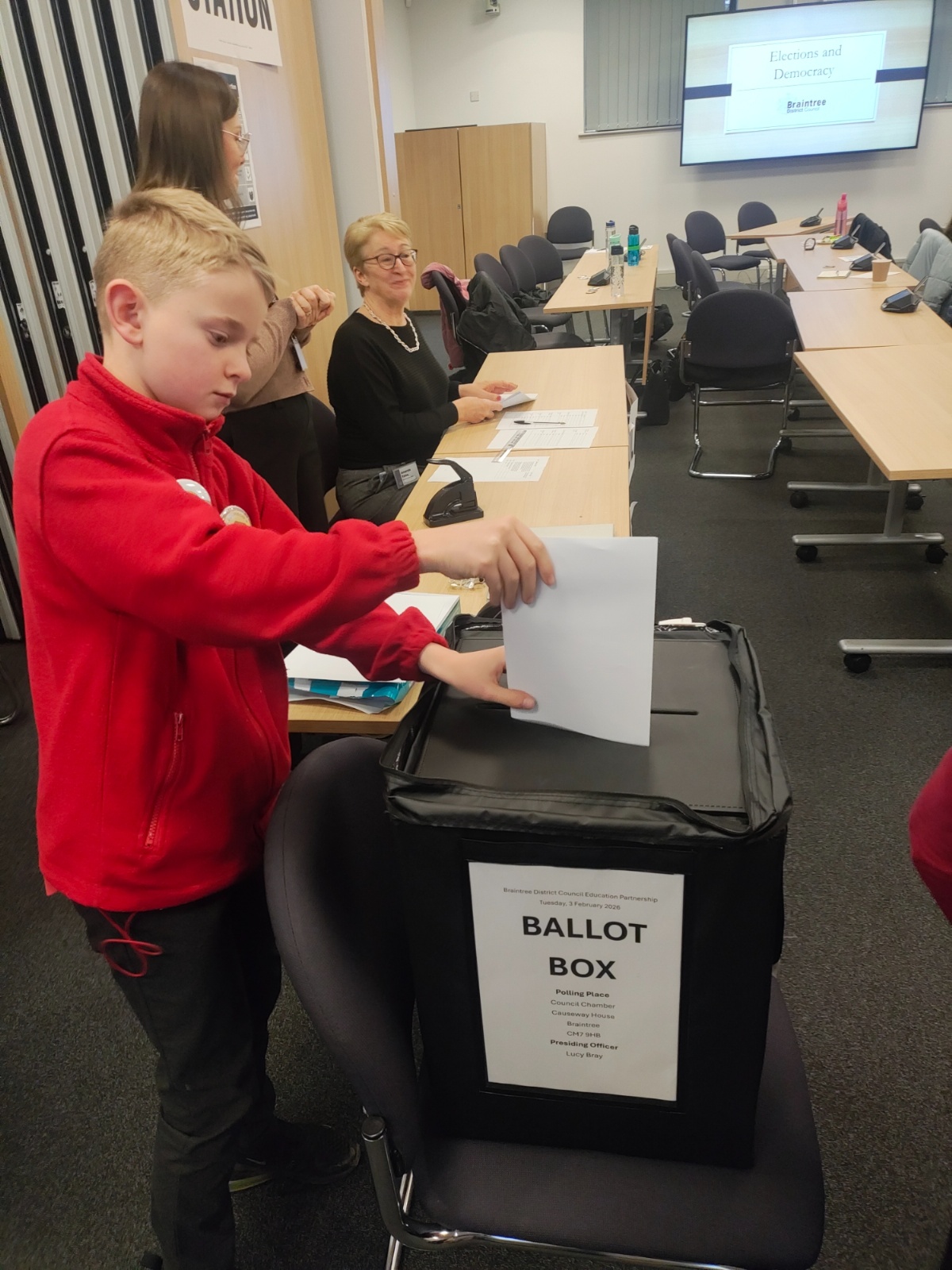Four Year 5 children were lucky enough to take part in a Democracy Day held by Braintree and District council on Tuesday. The day began with an explanation of what democracy is, how we carry out democracy in the UK and why it is such an important part of our society and values. The group were then able to see a real election in action by voting for a biscuit Mayor! Each part of the election was broken down fully to see how it all works on a much bigger scale. Finally, the group were able to ask questions both to the election team and the chairman himself. The children showed exactly what St Andrew's is all about, embodying our CARE values and asking some wonderful questions!