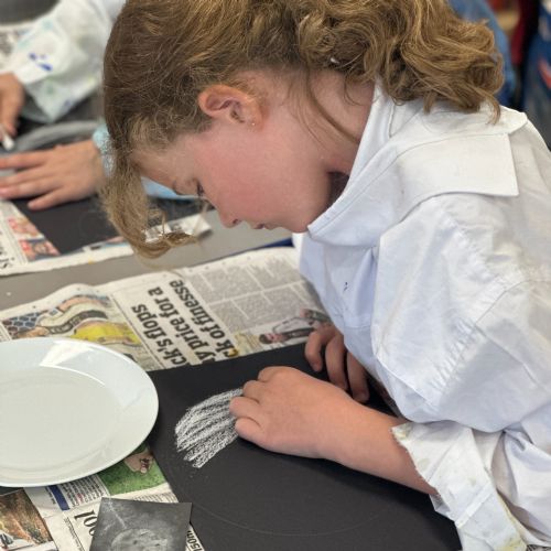 In Art, they used shading and smudging techniques with chalks to create a picture of our moon. They look beautiful and the children can't wait for their parents to see them at parents' evening!